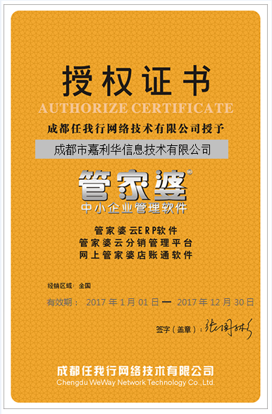 好消息:嘉利华签约《网上管家婆云ERP产品线》全国经销商